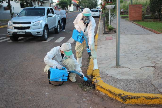 A equipe aplicou o produto nas entradas das bocas de lobo no início da noite para aproveitar a pouca movimentação de pessoas e veículos nas ruas. Outra campanha da Secretaria de Saúde envolve o combate ao mosquito borrachudo através da aplicação do BTI (biolarvicida) nos arroios e córregos de água. Esse trabalho ocorre a cada 15 dias em vários pontos do município. O larvicida não faz mal à saúde das pessoas, peixes e de outros animais.